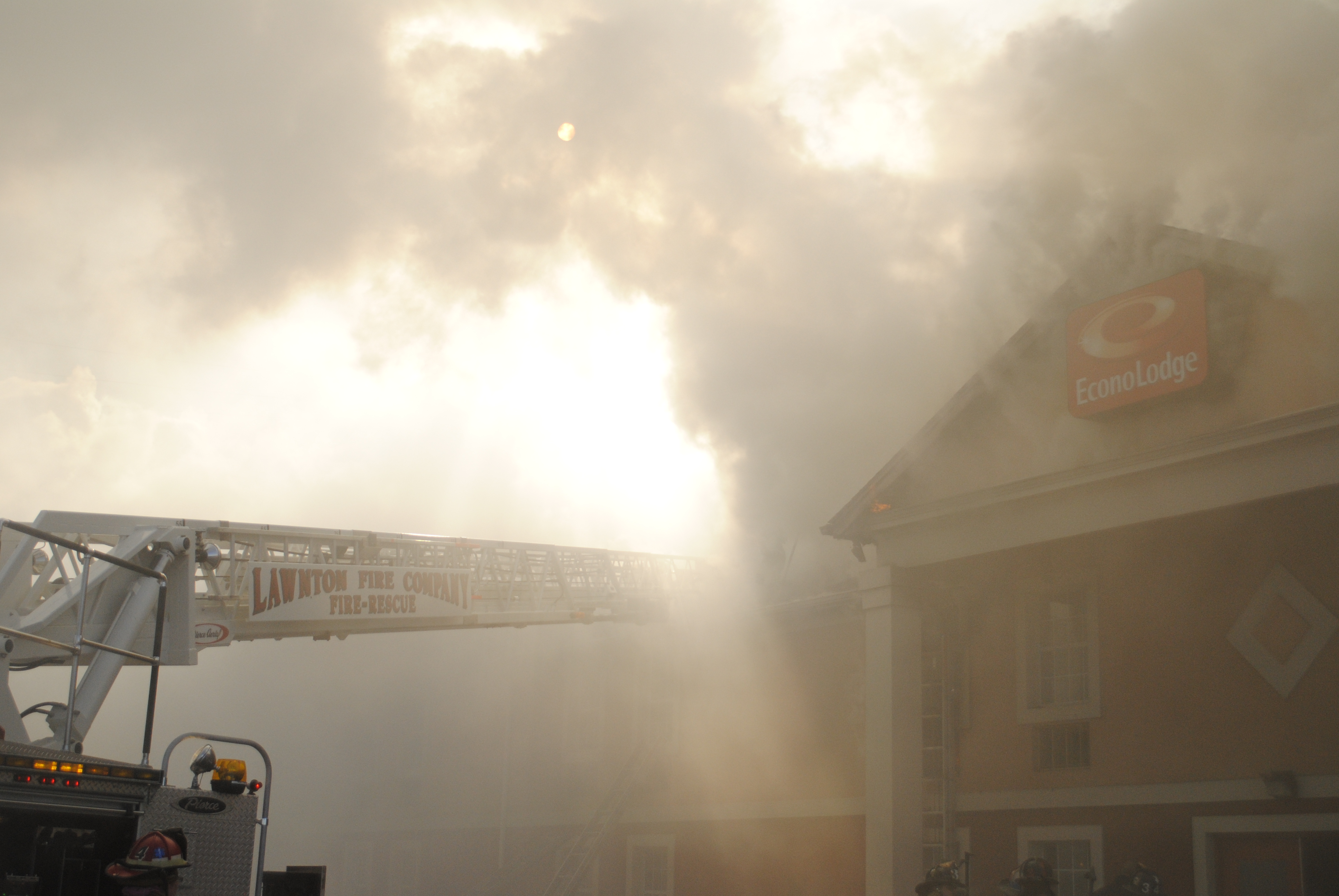 January 10, 2015 At 1336 hrs box 49-2 was struck for a structure fire at the Econo Lodge. Engine 40 responded with 6. Engine 40 arrived and was assigned to 2nd water source and supply Engine 44. Engine 40 dropped 900 feet of 5 inch. Command 49 called for 2 occupants that were trapped on the 2nd floor. Chief 91 and Chief 41 threw a ladder to the 2nd floor window. Chief 91 rescued the 2 occupants from the room via the window. Lt. 40 assisted Chief 91 with securing the ladder and assisting Chief 91 with bringing the occupants down the ladder. Engine crew also assisted with secondary searches of 1st and 2nd floor and overhaul of 1st and 2nd floor. Thanks to Cumberland County Engine 1-30 for covering the Borough. Time out was 2 hrs 4 mins. Pics courtesy of Photo 40 and capitalcityfirephoto.